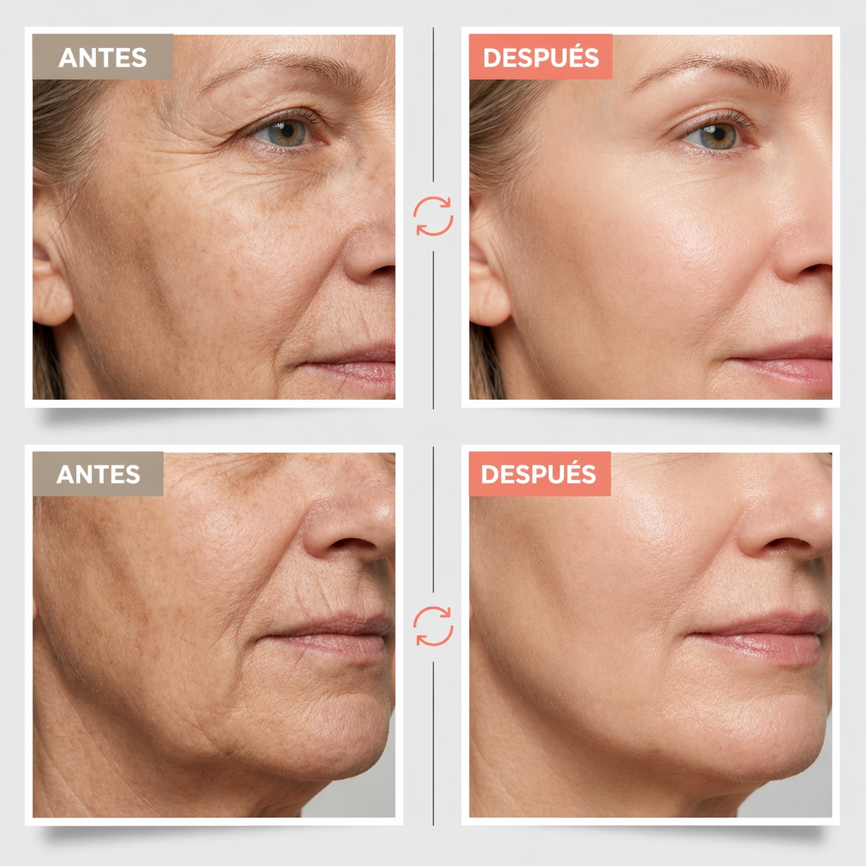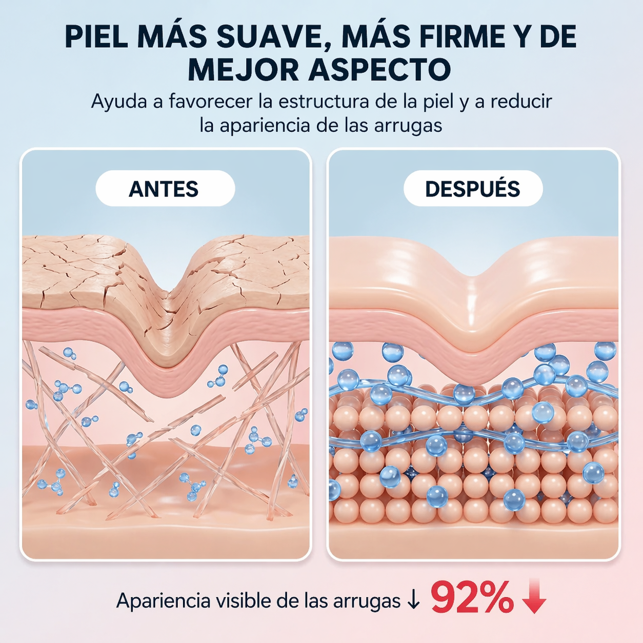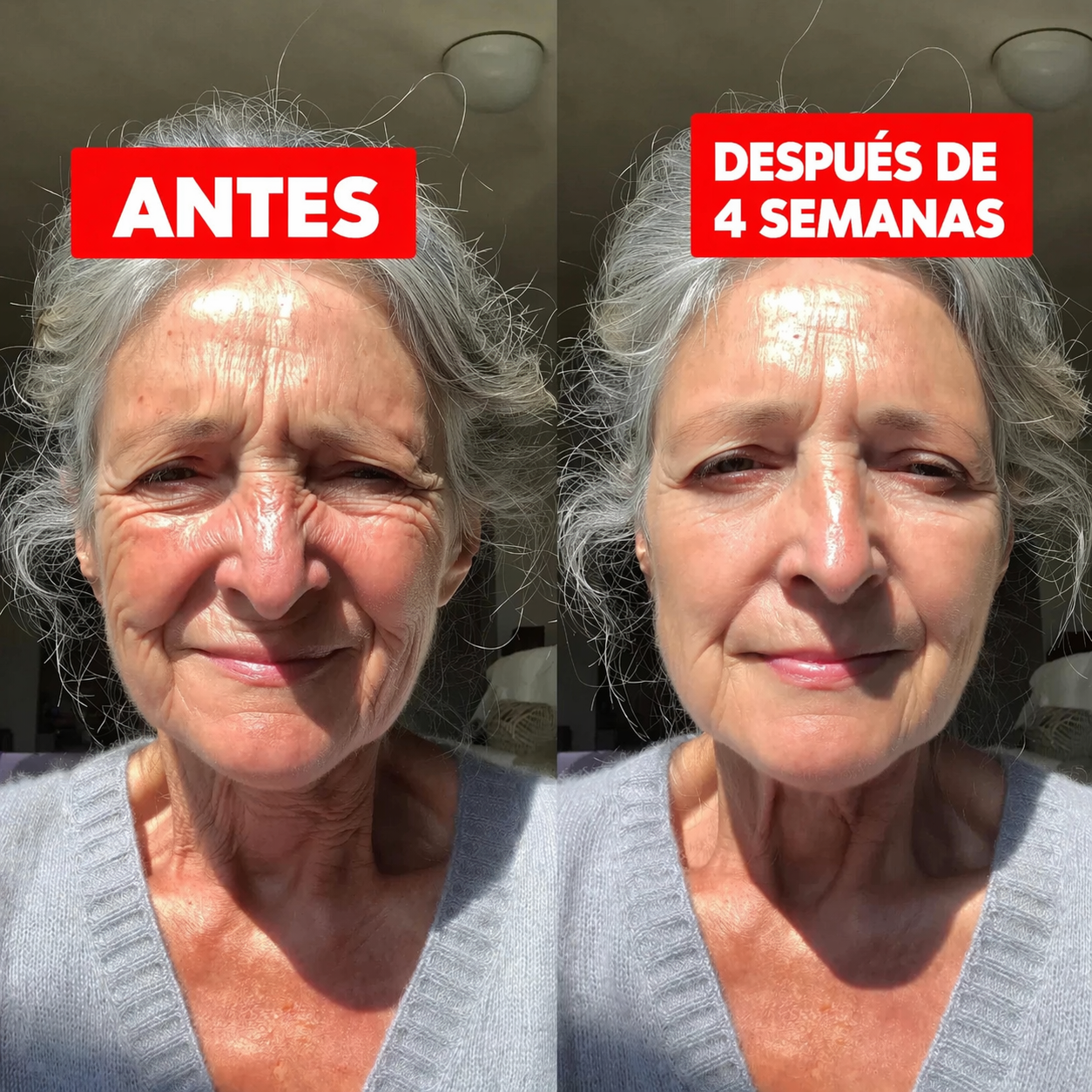 Las reconoces al instante: esas finas líneas alrededor de los ojos que hacen que la gente te pregunte si estás bien, por muy descansada que estés. Las mediciones clínicas muestran una reducción drástica en la profundidad de las arrugas en tan solo seis semanas. Por primera vez en años, tu rostro refleja cómo te sientes realmente.